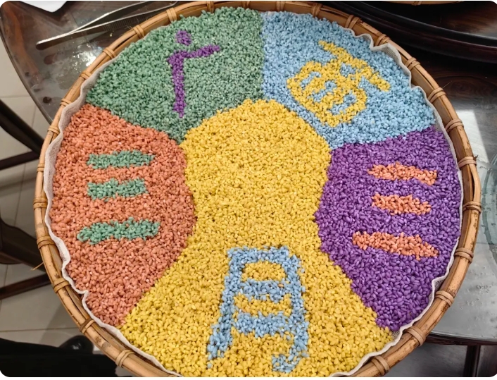 五色糯米飯,是壯族和布依族等許多民族的傳統(tǒng)美食,又被叫做烏飯,寓意是五谷豐登,吉祥如意。