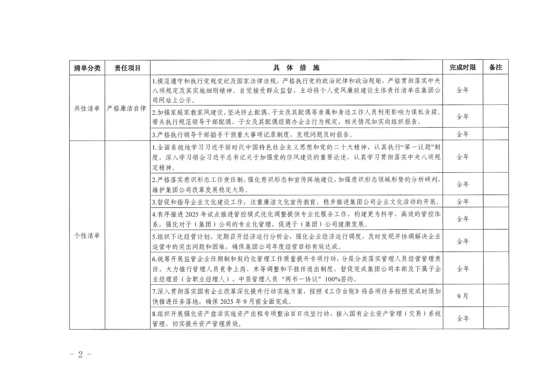 南寧交投集團領(lǐng)導(dǎo)班子其他成員2025年度黨風廉政建設(shè)“一崗雙責”清單(二)