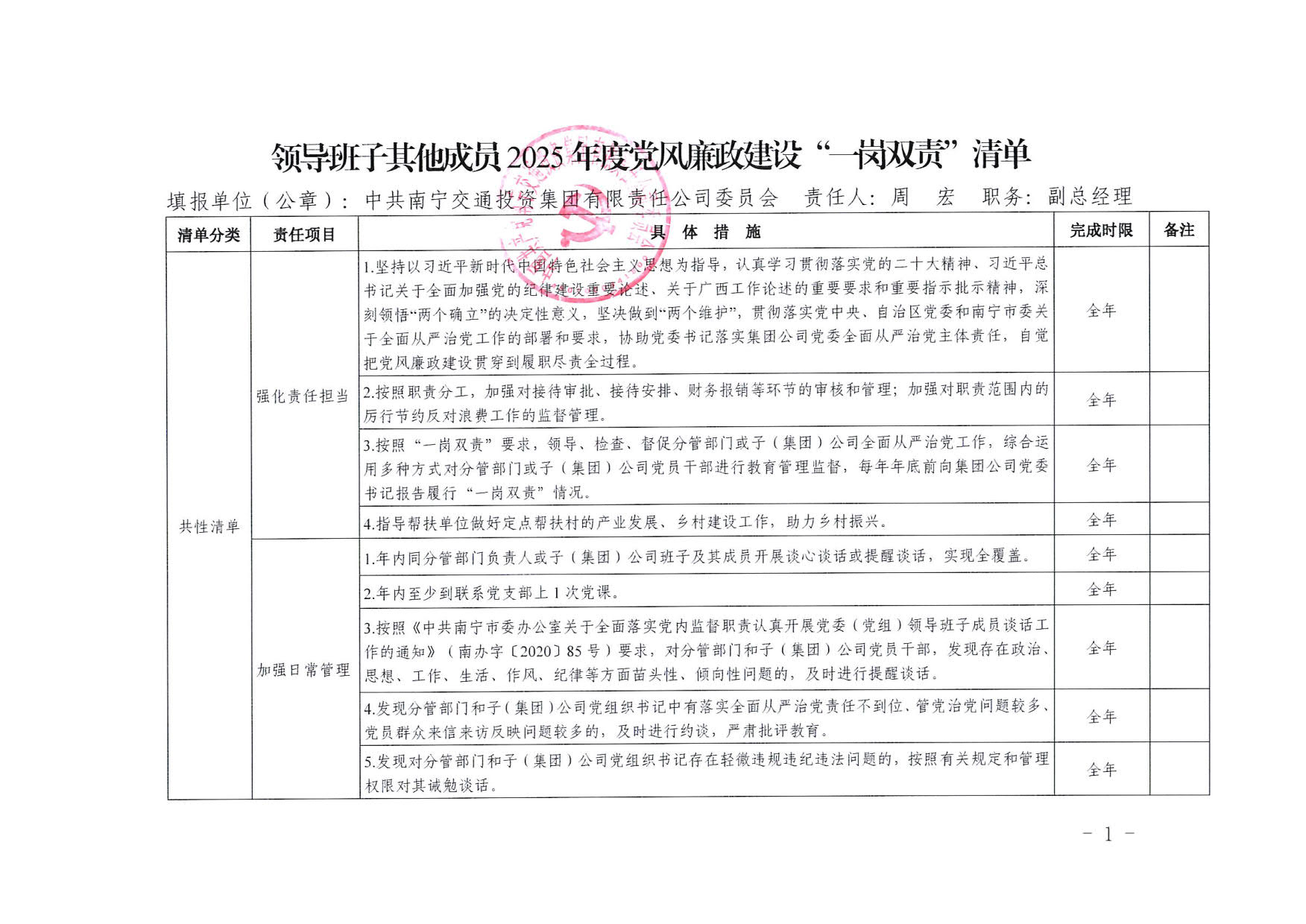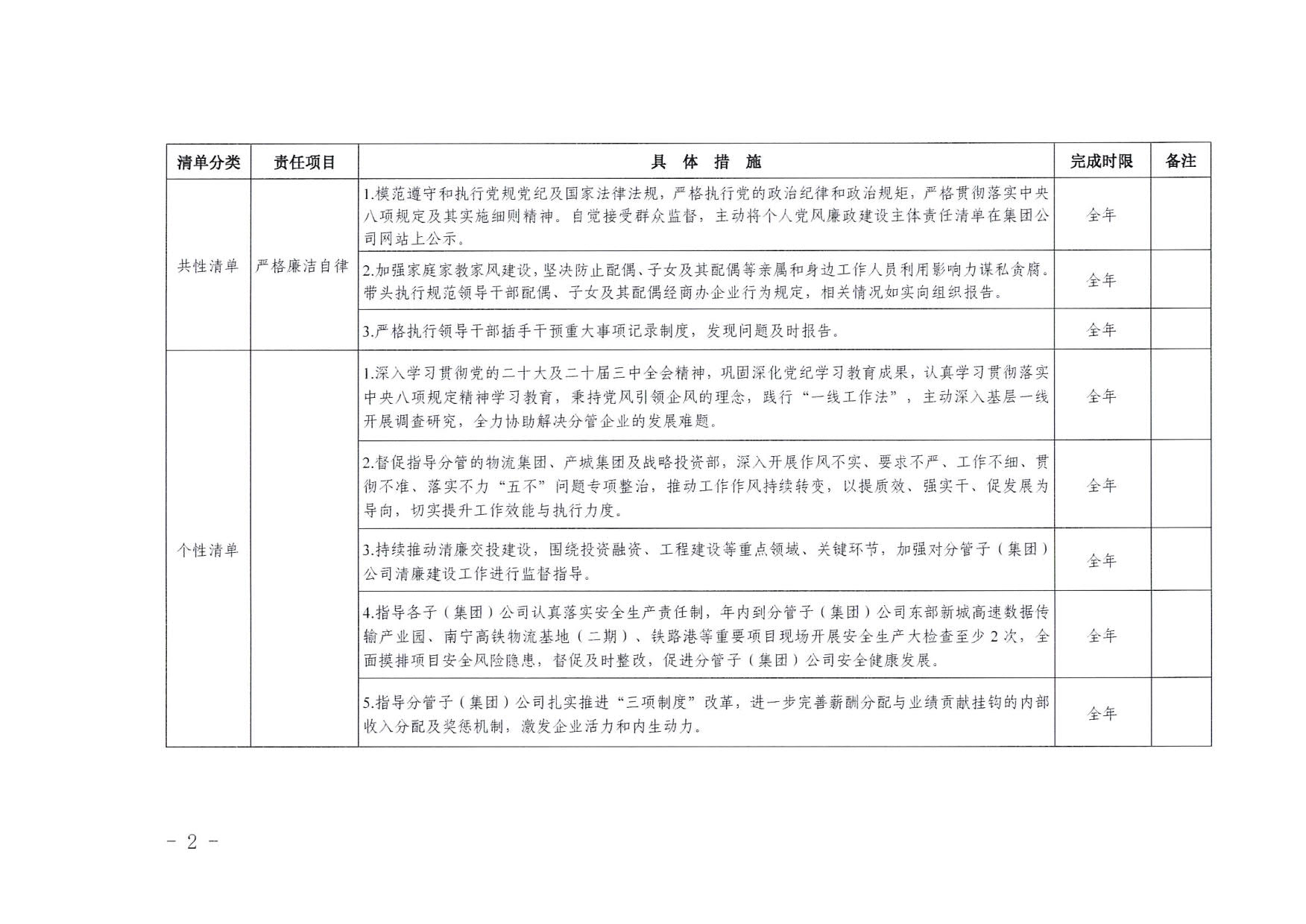 南寧交投集團領(lǐng)導(dǎo)班子其他成員2025年度黨風(fēng)廉政建設(shè)“一崗雙責(zé)”清單(六)