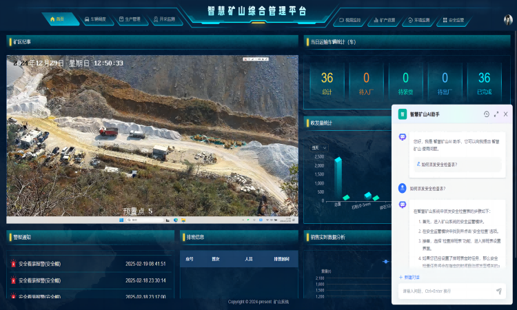 南寧礦業(yè)集團在AI技術(shù)革新浪潮中展現(xiàn)出積極進取的姿態(tài),全力探尋AI與礦業(yè)生產(chǎn)的完美融合點。2月27日,南寧礦業(yè)集團自主研發(fā)的智慧礦山綜合管理平臺成功接入DeepSeek大模型技術(shù),這一融合為綠色智慧礦山打造了雙擎驅(qū)動的智能底座,在安全生產(chǎn)、工藝優(yōu)化及供應鏈協(xié)同三個核心領域,實現(xiàn)智能化的突破,開啟礦山運營的全新智能時代。