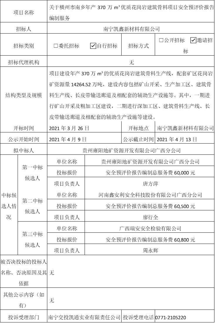 因公司發(fā)展需要,我集團(tuán)公司對(duì)金浦路24號(hào)城市花園白領(lǐng)公寓8套人才公寓及3個(gè)車(chē)位進(jìn)行出租底價(jià)評(píng)估,現(xiàn)將中標(biāo)結(jié)果公示如下:一、項(xiàng)目名稱:城市花園8套人才公寓及3個(gè)車(chē)位出租底價(jià)評(píng)估;二、開(kāi)標(biāo)日期:2021年1月27日;三、中標(biāo)單位及中標(biāo)價(jià)格單位名稱:廣西誠(chéng)信華正資產(chǎn)評(píng)估有限責(zé)任公司; 中標(biāo)價(jià)格(人民幣):肆仟陸佰伍拾元整(¥4650元);四、招標(biāo)人地址:南寧市青秀區(qū)站南東路2號(hào);聯(lián)系人姓名和電話:孫艷0771-2805236;五、公示時(shí)...