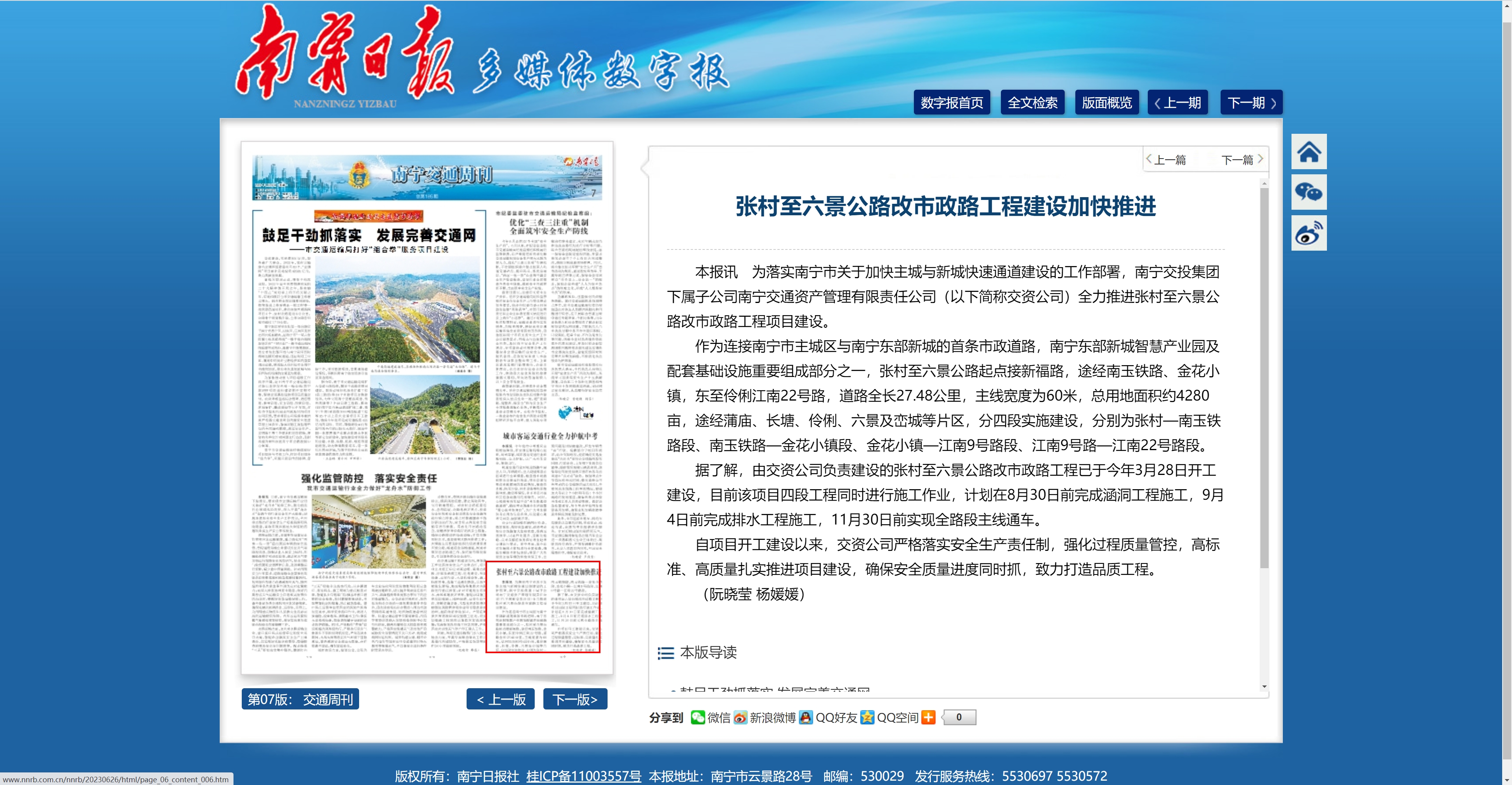 張村至六景公路改市政路工程建設加快推進